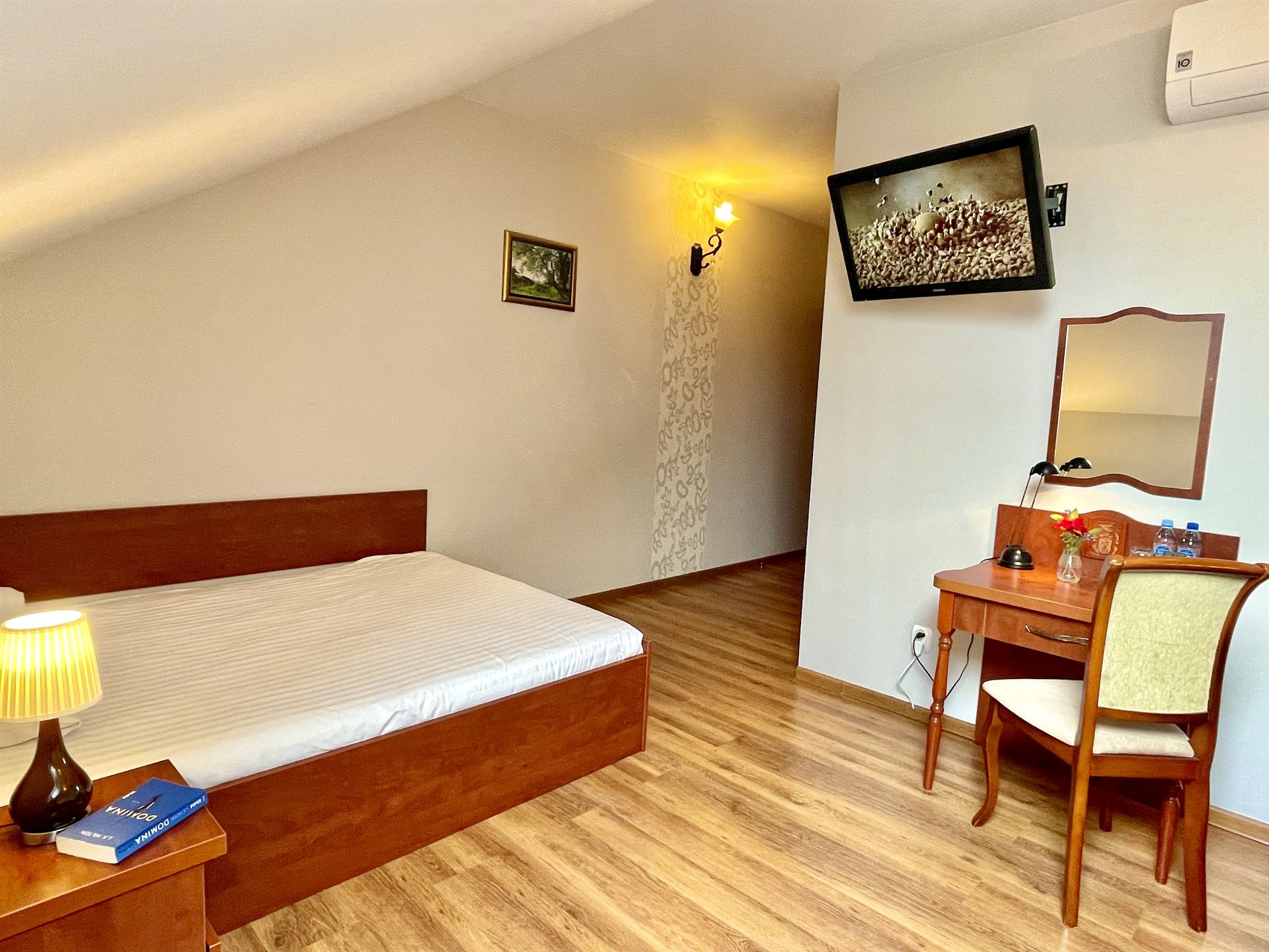 Przestronny Pokój 2os. U Sarnowskich wyposażony w m.in. biurko, telewizor z płaskim ekranem. W pokoju znajduje się również prywatna łazienka z suszarką do włosów oraz bezpłatnym zestawem kosmetyków.
