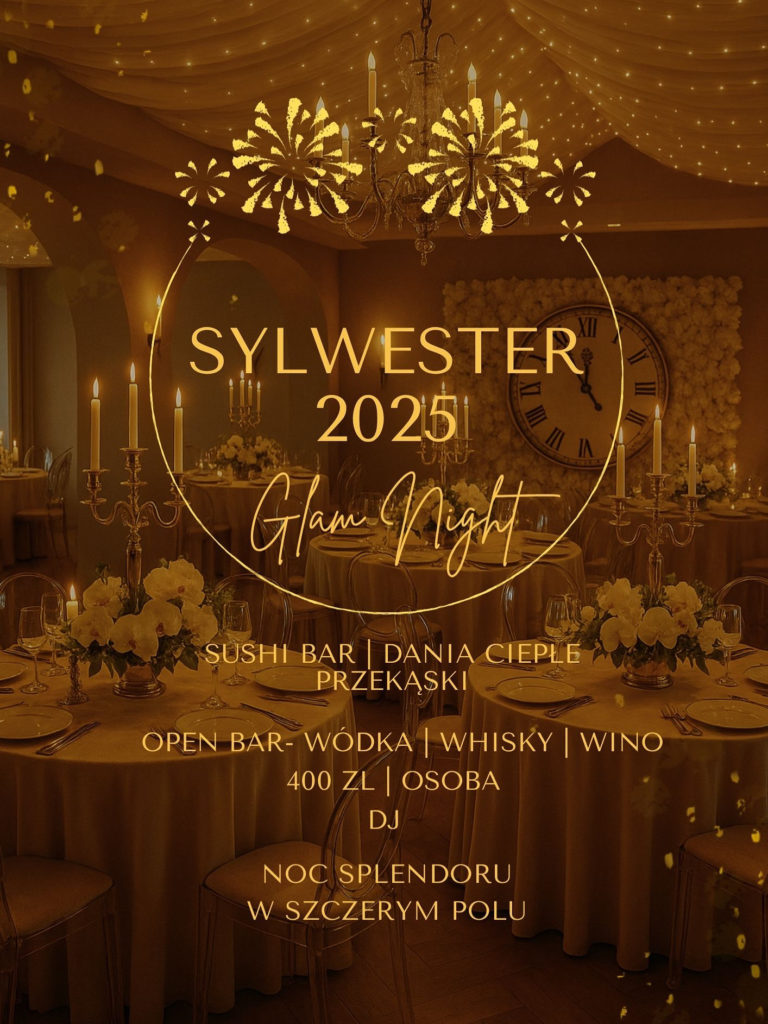 Zapraszamy na noc pełną elegancji i blasku w Folwarku w Szczerym Polu. Czekają na Was stylowe wnętrza, kryształowe świeczniki, subtelne dekoracje i wykwintne dania – od sushi po ciepłe potrawy z naszej oferty premium. Przez całą noc będzie dostępny open bar z wódką, whisky i winem, a o oprawę muzyczną zadba nasz DJ.