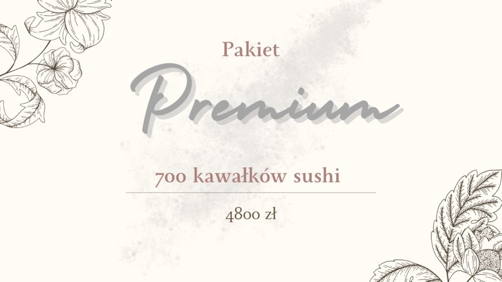 ok. 700 kawałków – futomaki, california, hosomakim, nigiri (tuńczyk Bluefin, węgorz, łosoś, warzywa, surimi, krewetka)