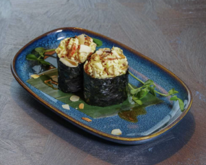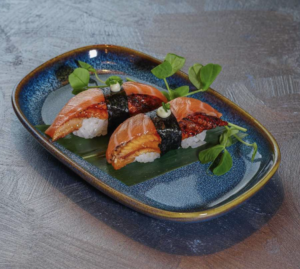 Sushi Bar to nowe serce naszego Folwarku – miejsce, gdzie japońska precyzja spotyka się z żywym ogniem pasji. Tworzymy sushi na oczach gości, w bezpośrednim kontakcie, z pełną otwartością na ich potrzeby.